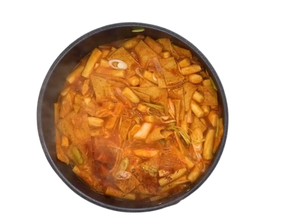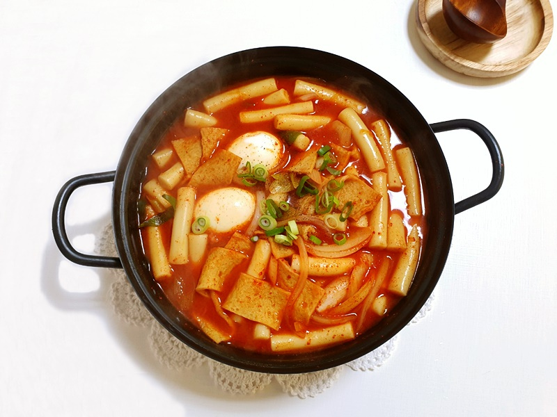 - 재료 조리 : 끓는 육수에 떡볶이 떡과 어묵을 넣고 중불에서 5분 정도 끓입니다.