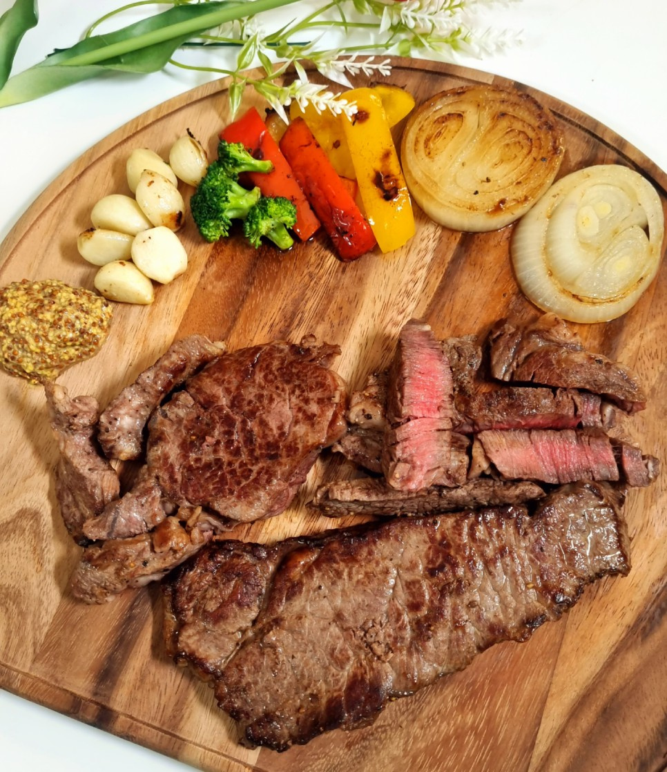 고기를 준비한 후에는 실온에 30분 정도 두어 온도를 맞춰주세요. 차가운 고기를 바로 조리하면 고르지 않게 익을 수 있기 때문이에요. 그리고 고기를 구울 때는 반드시 두께가 약 3cm 이상인 것을 추천합니다. 이렇게 하면 육즙이 풍부한 스테이크를 즐길 수 있답니다.